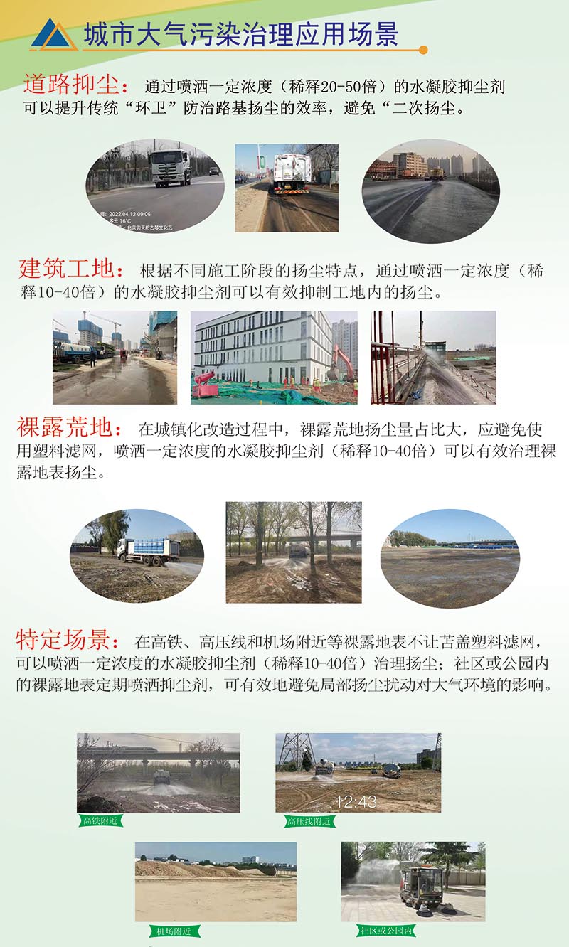 關于繼安 企業(yè)簡介: 繼安科技是由專家教授發(fā)起設立的專業(yè)技術公司(含繼安生態(tài)公司和湖北繼安生態(tài)環(huán)境科技有限公司等企業(yè)),是致力于科技創(chuàng)新、環(huán)保無公害、生物可降解抑塵降霾治理新思路的技術研發(fā)、銷售、產品服務于廣大客戶。 建立前期治理,中期維護,后期恢復大氣環(huán)境治理體系。 環(huán)保型水凝膠抑塵劑是可用于環(huán)保產業(yè)鏈環(huán)節(jié)中的大氣顆粒物污染治理領域, 產品所采用...